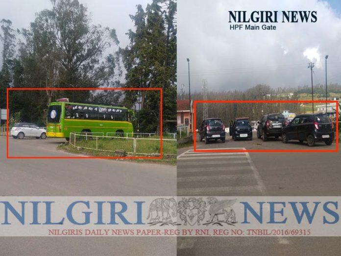 உதகை HPF Main Gate சாலைகளில் போக்குவரத்துக்கு இடையூறாக உள்ள வாகனங்களை காவல்துறையினர் கண்டுகொள்வதே இல்லை .