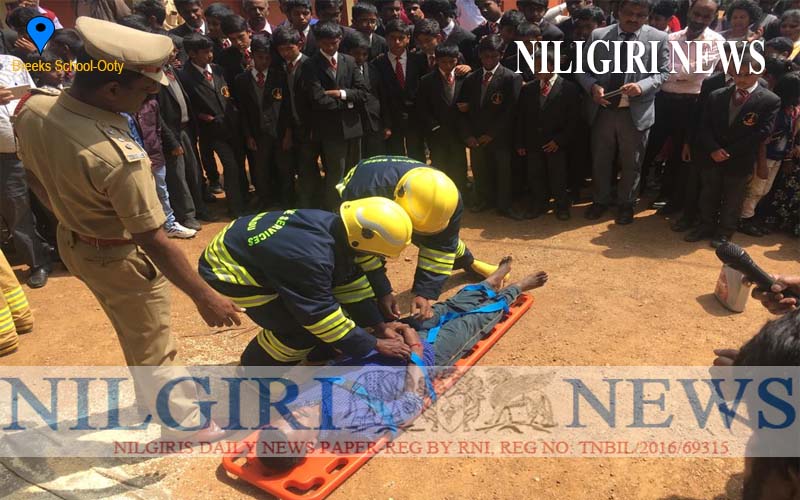 Ooty 13 October 2018 : பேரிடர் குறைப்பு தினத்தை முன்னிட்டு உதகை தீயணைப்பு மற்றும் மீட்புப் பணிகள் நிலையத்தின் சார்பில் பள்ளி மாணவ மாணவிகளுக்கு பேரிடர் காலங்களில் ஏற்படும் ஆபத்தை எப்படி எதிர்கொள்ள வேண்டும் என்பதனை தத்துரூபமாக உதகை பிரிக்ஸ் மெமோரியல் பள்ளி மாணவ மாணவிகளிடம் செய்து காண்பித்தனர் .