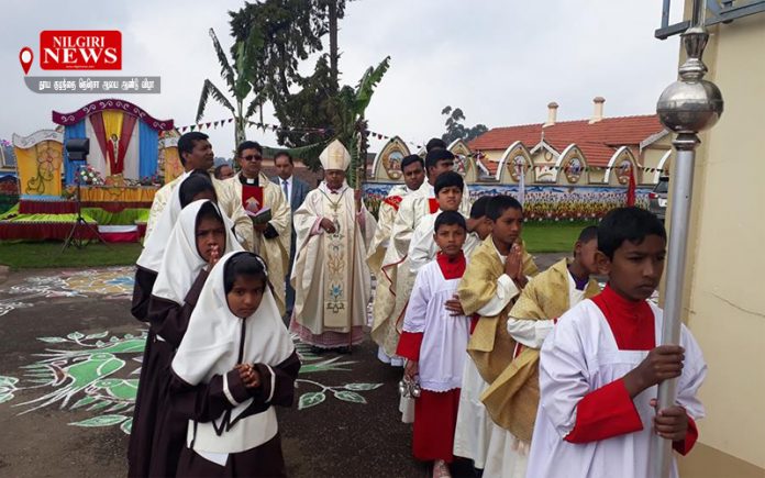 Ooty 14 October 2018 ஊட்டி தூய குழந்தை தெரெசா ஆலயத்தின் எண்பத்தி நாலாவது ஆண்டு விழா சிறப்பாக கொண்டாடப்பட்டது .கடந்த 7ஆம் தேதி செயின்ட் மேரிஸ் ஆலயத்தின் பங்கு தந்தை அருட் பணி வின்சென்ட் அவர்களால் கொடியேற்றி வைக்கப்பட்டது .தினமும் மாலை ஜெபமாலை ,நவநாள் ,திருப்பலி நடைபெற்றது .காங்கேயம் குழந்தை மாதா திருத்தல பங்கு தந்தை கிளாடிஸ் சிறப்பு திருப்பலி மற்றும் மறையுரை நிகழ்த்தினார் .இன்று 14ஆம் தேதி பங்கின் விழா சிறப்பாக நடை பெற்றது . மறைமாவட்ட ஆயர் அமல்ராஜ் தலைமையில் விழா சிறப்பு திருப்பலி நடை பெற்றது ..அருட்பணி.அமல்ராஜ் ,அருட்பணி. இருதய லாரன்ஸ் ,பங்கு தந்தை பெனடிக்ட் மற்றும் உதவி பங்கு தந்தை ரெனோல்ட் பிரபு ஆகியோர் சிறப்பித்தனர் .அனைத்து ஏற்பாடுகளையும் பங்கு தந்தை பெனடிக்ட் ,பங்கு பேரவை உறுப்பினர்கள் இளைஞர் குழு செய்திருந்தனர் .-Nilgiri News
