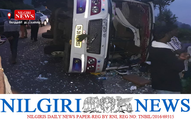 கோத்தகிரி 22 October 2018 :கோத்தகிரி தட்டப்பள்ளம் அருகே சென்னையிலிருந்து வந்த சுற்றுலா வாகனம் கவிழ்ந்து விபத்துக்குள்ளானது .இதில் பயணம் செய்த 5 பேருக்கு படுகாயம் ஏற்பட்டது .விபத்தில் காயமடைந்தவர்கள் அரசு மருத்துவமனைக்கு அனுப்பிவைத்தனர். அவர்களுக்கு அங்கு சிகிச்சை அளிக்கப்பட்டு வருகிறது. இந்த விபத்தால் அப்பகுதியில் சிறிது நேரம் போக்குவரத்து பாதிப்பு ஏற்பட்டது. – Nilgiri News
