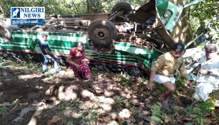 நீலகிரி மாவட்டம் கூடலூரை அடுத்த நாடுகாணி பகுதியில் அரசு பேருந்து கவிழ்ந்து 40க்கும் மேற்பட்ட பயனிகள் காயம்.