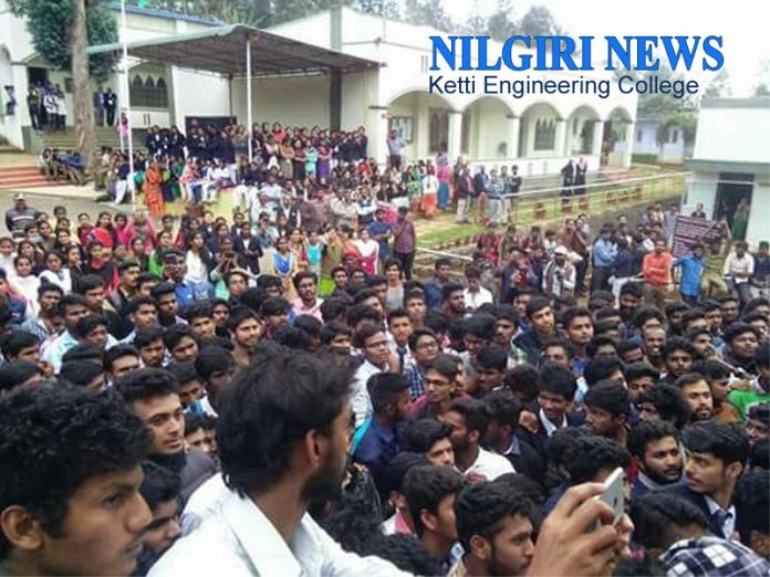 Ooty September 2018 : நீலகிரி மாவட்டம் கேத்தி பகுதியில் அமைந்துள்ள தனியார் பொறியியல் கல்லூரியில் 1200 க்கும் மேற்பட்ட மாணவ மாணவிகள் இங்கு படித்து வருகின்றனர் .பேராசிரியர் உட்பட 250 பேர் பணிபுரிந்து வருகின்றனர். இவர்களுக்கு மூன்று மாதம் ஊதியம் வழங்காமல் தாமதப்படுத்தி வருவதால் நேற்று மதியம் உள்ளிருப்பு போராட்டத்தில் ஈடுபட்டனர் இதனைத் தொடர்ந்து இன்று உணவு இடைவேளையின் போது மீண்டும் ஆசிரியர்கள் போராட்டத்தில் ஈடுபட்டனர்.