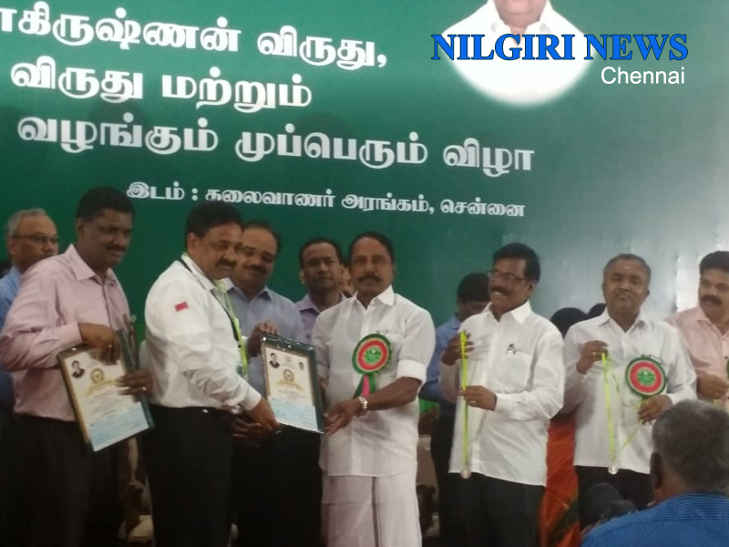 Chennai 06 September 2018 : நீலகிரி மாவட்டத்தில் ஓன்பது ஆசிரியர்களுக்கு டாக்டர் ராதாகிருஷ்ணன் விருது வழங்கப்பட்டது இதில் திரு சந்திரசேகர் ,திரு வேணுகோபால், திருஆரி, திரு சுப்ரமணி மற்றும் 5 ஆசிரியர்களுக்கு விருது தமிழக முதலமைச்சர் எடப்பாடி பழனிச்சாமி அவர்கள் தலைமையில் கல்வி அமைச்சர் திரு செங்கோட்டையன் அவர்கள் சான்றிதழ் மற்றும் விருதுகளை வழங்கினார். இதில் அரசு மேல் நிலை பள்ளி தலைமையாசிரியர் திரு சந்திரசேகர் கூறுகையில் இந்த விருது ஆசிரியர் தினத்தன்று வாங்கியது எங்களுக்கு பெருமையாகவும் ஊக்கமளிக்கும் விதமாக உள்ளது என அவர் தெரிவித்தார் .- Nilgiri News