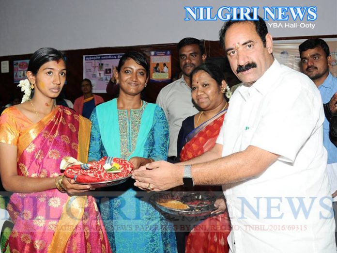 Ooty 15 September 2018 :நீலகிரி மாவட்டம் உதகை ஒய்.பீ.ஏ ஹாலில் ஒருங்கிணைந்த குழந்தைகள் வளர்ச்சி திட்டம் சார்பில் 250 கர்ப்பிணி பெண்களுக்கு மங்கல பொருட்கள் வழங்கி சமுதாய வளைகாப்பு நிகழ்ச்சியினை மாவட்ட ஆட்சித்தலைவர் திருமதி.ஜெ.இன்னசென்ட் திவ்யா அவர்கள் தொடங்கி வைத்தார்.அதனை தொடர்ந்து ஒருங்கிணைந்த குழந்தைகள் வளர்ச்சி திட்டத்தின் சார்பில் கர்ப்பிணி பெண்களுக்கு மங்கல பொருட்களையும், ஏழு வகையான உணவுகளையும் வழங்கி சமுதாய வளைகாப்பு நடத்தப்பட்டது.இந்நிகழ்ச்சியில் மாநிலங்களவை உறுப்பினர் திரு.கே.ஆர்.அர்ஜூணன் உதகை கோட்டாட்சியர் திரு.சுரேஷ், துணை இயக்குநர் சுகாதார பணிகள் மரு.பொற்கொடி, சமூக நலத்துறை அலுவலர் திருமதி.தேவகுமாரி, ஒருங்கிணைந்த குழந்தைகள் வளர்ச்சி திட்ட அலுவலர் திருமதி.கீதா, நகராட்சி பொறியாளர் திரு.ரவி மற்றும் அரசுத்துறை அலுவலர்கள் உட்பட பலர் கலந்து கொண்டனர்.-Nilgiri News