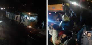 இருசக்கர வாகனம் நிலைதடுமாறி எதிரே வந்த அரசு பேருந்தில் மோதி சிறிது தூரம்...